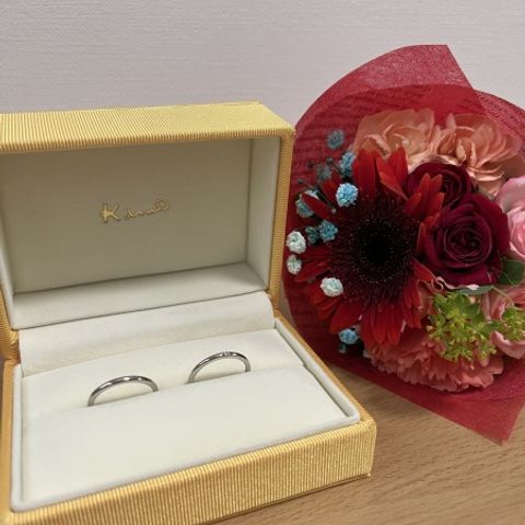 ウェーブタイプの一部マット加工が入ったデザインにしていただきました フルオーダーの為、二人の好きなデザインに出来ますし、彼女が金属アレルギー持ちだった為、アレルギーフリーで作成出来たのも良かったです 2人に合った素敵な指輪となりました!