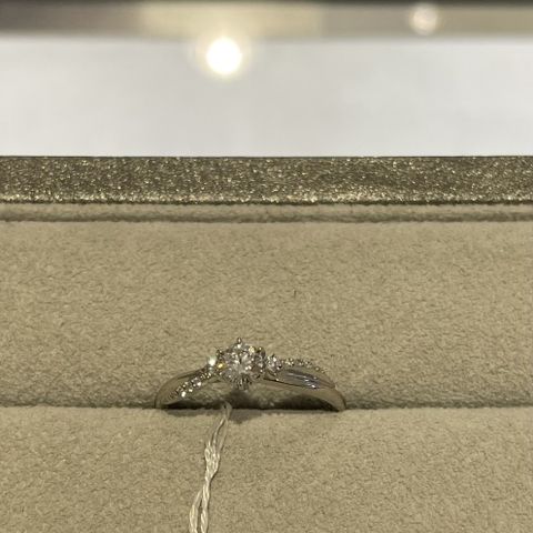 どのかたちが似合うか最初に診断をしてもらって、私達夫婦は少し斜めになっているデザインがおすすめとのことでした。確かに細くみせてくれるデザインで、ダイヤの粒もキラキラでつけてるだけで自分を引き立ててくれる指輪に出会えました