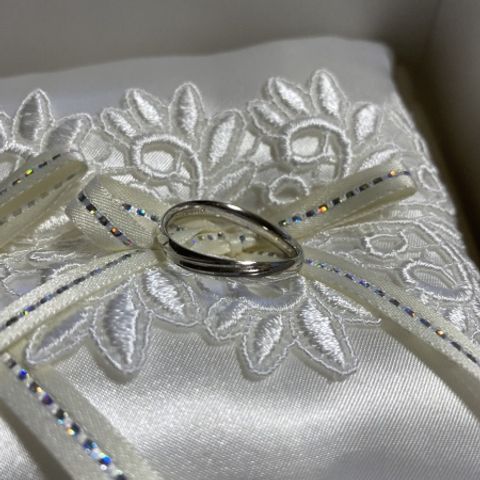 キラキラが欲しい、でも結婚指輪感も残したい…そして少し個性的なデザインの方が良い、という希望を伝えたところこちらのリングを紹介されました。いろいろ試着し、もう少しダイヤが多い指輪もありましたが、控えめかつ上品なこちらのデザインがしっくりきてすぐ決まりました。