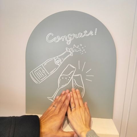 ホームページで見ていた時から一目惚れしていたアプローズ。ダイヤモンドが埋め込まれていて、でも主張は強すぎない優しい結婚指輪です。手を動かす度にキラキラと輝き、その感動が忘れられずアプローズに決めました。