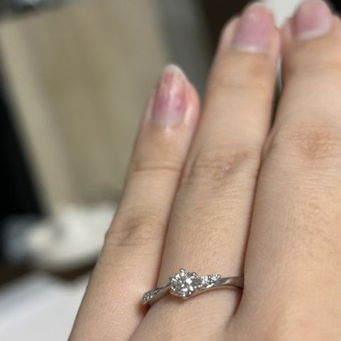 自身の手の診断をしてもらった上で、選んでいったためとてもデザインもつけ心地もお気に入りです。 始めはウェーブを選ぶ予定ではありませんでしたが、診断やスタッフさんのアドバイスのおかげで素敵な指輪に出会うことができて感謝しております。