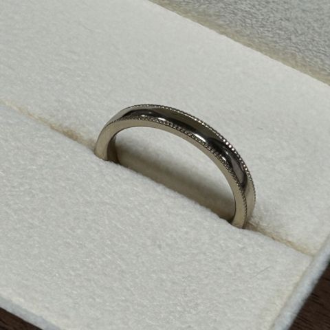 シンプルでありながらも光の角度角度によって輝き方が変わるデザインや素材(pt950)、埋め込みダイヤ(外側)などを考慮するとコストパフォーマンスに優れた商品なので、この指輪を多くの方におすすめしたいです。