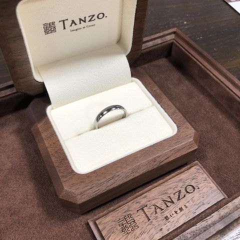 TANZOの名の通り、鍛造製で製作しており丈夫だそうです。 傷が付かない訳ではないですが、歪みにくい点が特に良いです。永く着けるものなので安心です。 平甲丸という仕上げ方の指輪を作りました。 指に馴染みがよく、普段指輪を着け慣れていませんでしたが、直ぐに馴染んできました。