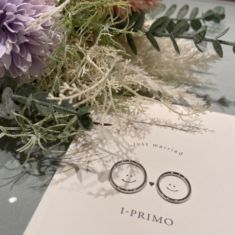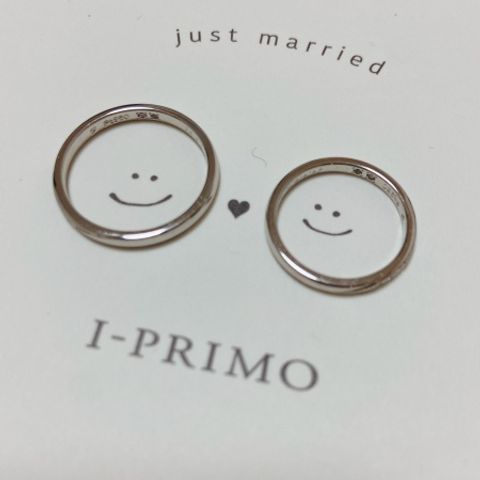 新郎の指輪は、男性用ではなく、女性用の指輪をサイズアップしたもの。ダイヤモンドを10個並べても、上品な仕上がりです。自分の好みにあったオリジナル感ある 指輪をつくってもらえるのもアイプリモの指輪のおすすめポイントです