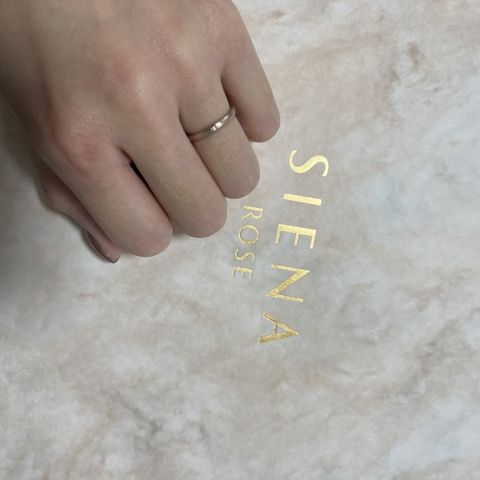これからずっと使っていくので、鍛造製法のとにかく丈夫な指輪にしました。デザインはシンプルなものが良かったので、手彫りの曲線と艶消しをさりげなく入れていただきました。どこを正面にするかで見え方が変わるので、その日の気分で決めています♪