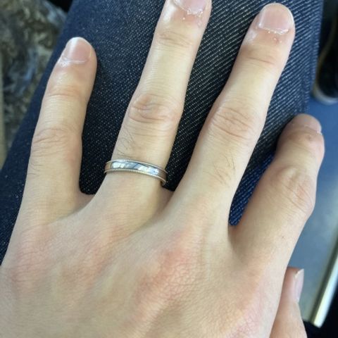 二人でお揃いのデザインで指輪を探していました。 好きなデザインをオーダーできるということでミル打ちを希望しました。 出来上がった指輪を見て希望通りの指輪となっていて大変満足できました。 これからこの指輪をつけてるのが楽しみです。
