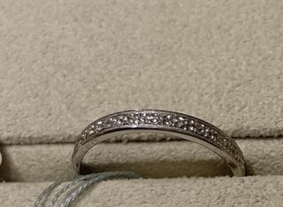 ダイヤモンドサテンがとても美しく、着用した際に形がウェーブであり、指先が長く綺麗に見えました。他の人から見えない部分にも、ダイヤモンドが埋め込まれており、素敵だと感じました。材質もプラチナであり、金属アレルギーがある自分も安心して着用できます。