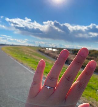 シンプルだけれど、指輪自体の煌めきが綺麗で素敵な指輪です。着け心地もよく、今後長く大切にしたいと思えます。ダイヤ部分は凹凸が少なく、衣類などに引っかかりにくい作りとなっているところも生活がしやすく良い点だと思います。