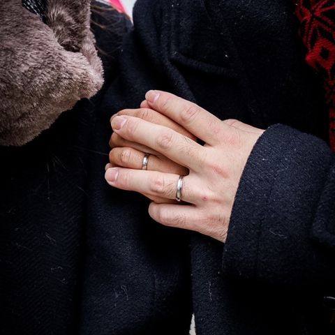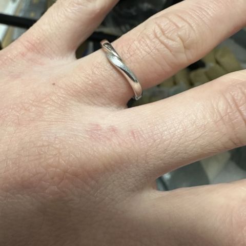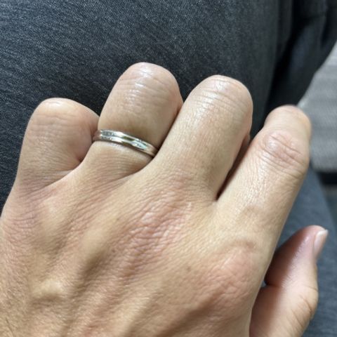 指輪のデザインはシンプルで長く着用できるものを彼と検討しました。私が金属アレルギーなので、素材はサージカルステンレスで作成しました。金属アレルギー対応の指輪は少ない中、デザインも気に入り、価格も満足のいくものだったので購入しました。