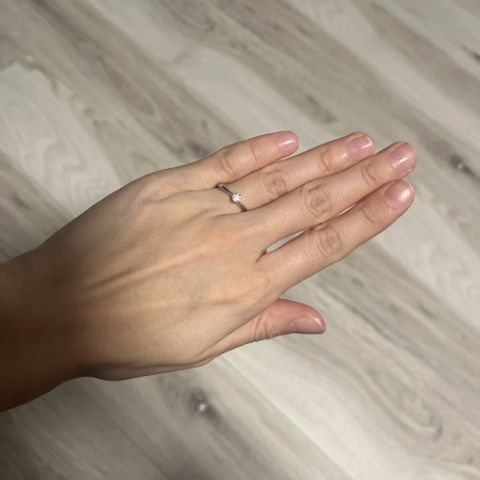 普段アクセサリーを身につける事がないのですが、リングが細いのでつけている感覚があまりなく普段アクセサリーをつけていない人にもおすすめの指輪です。一粒のダイヤモンドがよく輝いており身につけていてテンションが上がります。
