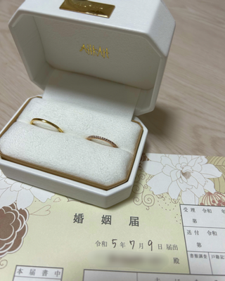 最初はダイヤモンドなしのシンプルなリングを予定していましたが、ダイヤモンドの美しさと手入れのしやすさにダイヤありのものに決めました。無事入籍し毎日つけていますが、左手の薬指を見ると嬉しい気持ちになります。