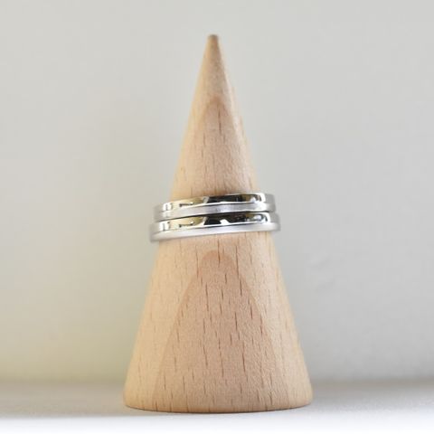 捻ったデザインであり、中央には非光沢感のあるデザインのワンポイントのあるのが個人的にとても好きで選びました。 また、丸みのあることで指に嵌めた時に痛くない、少し重量感のなることもとても良いポイントです。