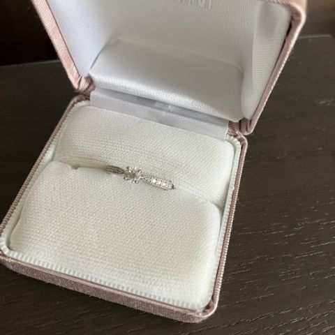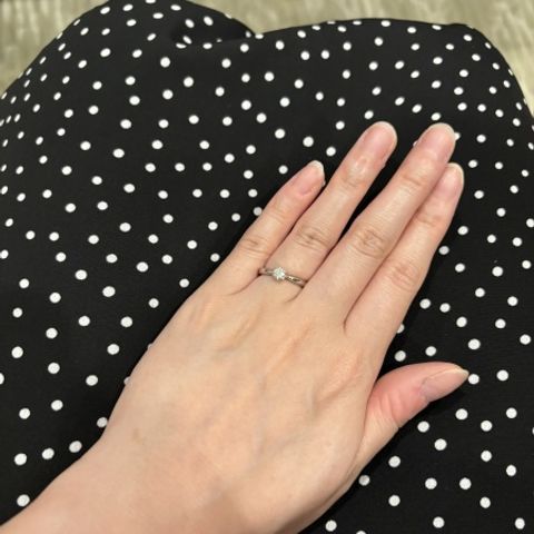 シンプルかつ特別な場面で使いやすいデザインでとても彼女も気に入ってくれています。サイドのダイヤも手につけた側からもキレイに見えるのがとても印象的です。彼女が手にかざした雰囲気もとてもキレイに見えて僕自身気に入っています。