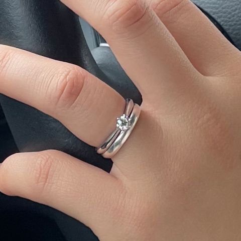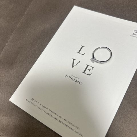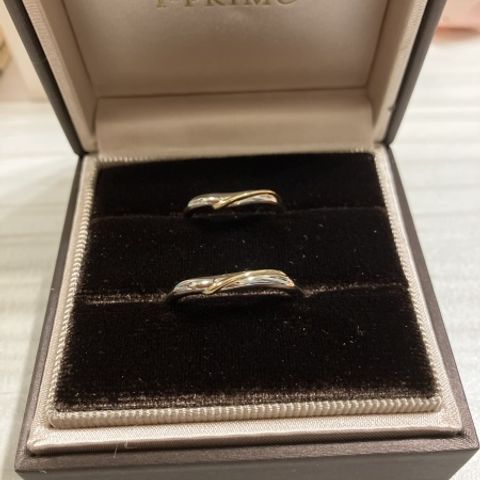 デザインが可愛かった。リボンのようなモチーフなのが、他にないデザインで好みだった。V字の形だったので、指が長く見えるとスタッフの方に教えていただいた。婚約指輪は他者のものだったが、いい感じにフィットし、重ね付けしやすいデザインだった。指輪の意味も手を取り合うようなという部分に共感し、おそろいで付けられることがとても嬉しい。素材も温泉等にも強い素材なのも良いポイントだった。