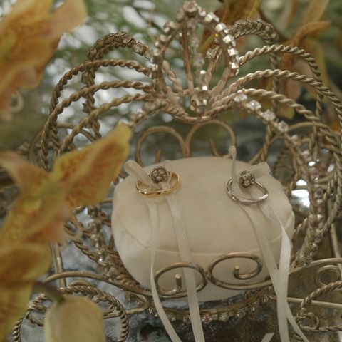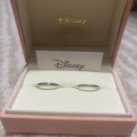 ディズニーデザインの美女と野獣モデルの内側がプラチナではなくピンクゴールド、イエローゴールドと違った色味でつけている状態であると自分達のみ内側が違っていることを知っている様なデザインにしていただきました またトゥーアズワンダイヤモンドという一つの原石を2つにカットし作られているものを内側に入れ途切れることのない絆の証という意味合いのあるものを使っています