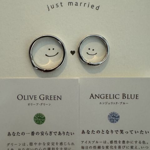 キャンペーンもありそれぞれの誕生石を一つずつ入れてもらいました。夫の分は内側に、わたしは前面に入れてもらいお互いにとても気に入っています。ワックス制作のコースにしたので、自宅に届いて実際に見てみると思った以上の仕上がりで大満足です。シンプルなデザインなので服装に左右されず、長く着用できそうです。