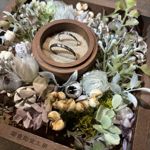 指輪を普段はあまりお互い着けることがありませんが、普段使用や、大事な時に着ける指輪として、シンプルでもあり際立つもの、着けていて違和感のないもの、気持ちが上がるものを妻が納得いくまで色々見て決めました。