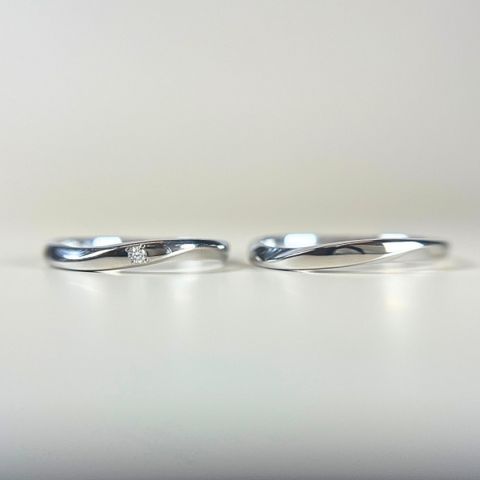派手すぎずシンプル過ぎない石の数が気に入りました。男性の指輪も女性の指輪と同じ幅にすることもでき、本当のお揃いなのが良かったです。2つの指輪を重ねると流れるラインが綺麗に重なるところも素敵だと思います。