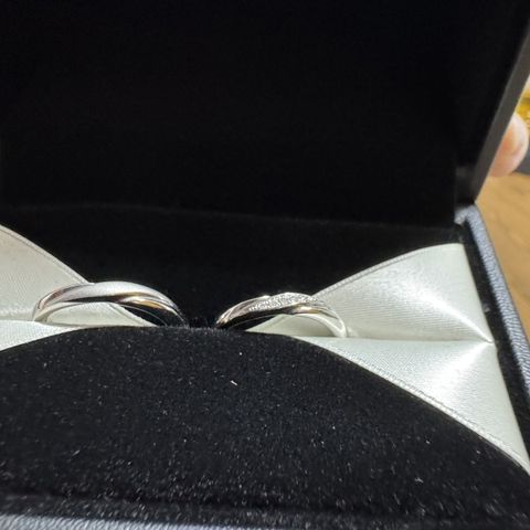 2人の好みに合うシンプルさが気に入った。派手すぎないが、普段つけているととても映えるので良い。着け心地がとてもよくて受け取った日からずっと付けている。スタッフの方におすすめいただいたとおり、指に馴染む感じがあり、違和感はほとんど感じないのですごく良い。