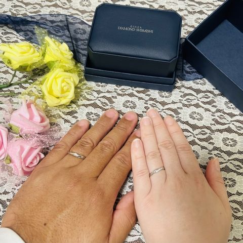 それぞれの好みを妥協せずに選べました‼︎ お互いの好みにそっていくつか指輪を出してもらい より好みのものを最終的に選べ大満足です。 なによりもつけ心地がよく 今まで一度も指輪をつけたことがなかったのですが 違和感なく毎日つけれてます。