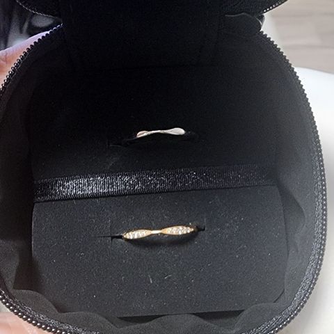 インスタで見かけて一目惚れしました。シルバーの指輪に斜めにゴールドが入っていて、そのゴールドの上に細かいダイヤモンドが並べられており、ダイヤモンドも主張が強すぎず、とてもおしゃれな感じで良いと思いました。