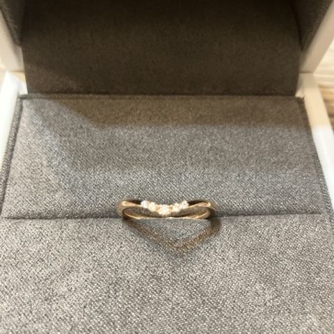 ウェーブとV字で迷いましたが、最終的には 第一印象で手に取ったものを選んだようです。 無難にプラチナにしようかなとも思いましたが やっぱりずっと付けているなら気に入った物にしたいと思ってピンクゴールドを選びました♪ 可愛いのでおすすめです。