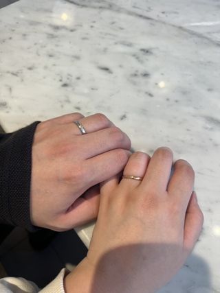 ウェーブタイプの一部マット加工が入ったデザインにしていただきました フルオーダーの為、二人の好きなデザインに出来ますし、彼女が金属アレルギー持ちだった為、アレルギーフリーで作成出来たのも良かったです 2人に合った素敵な指輪となりました!