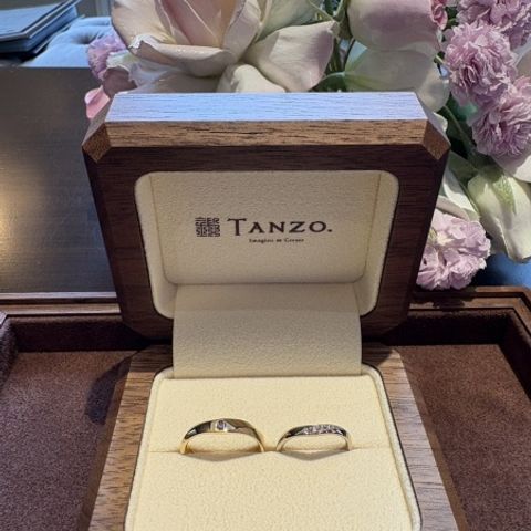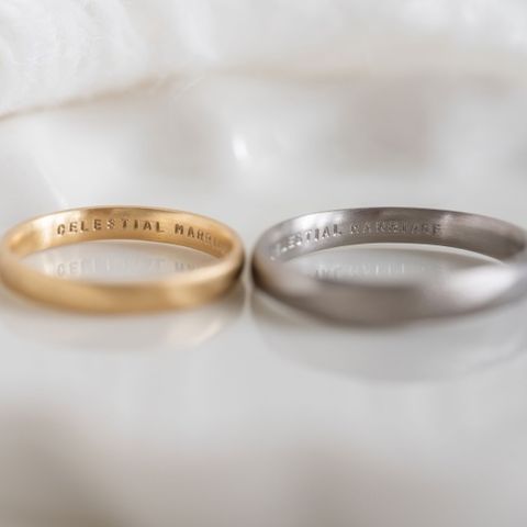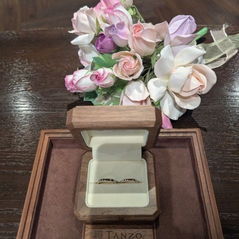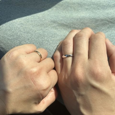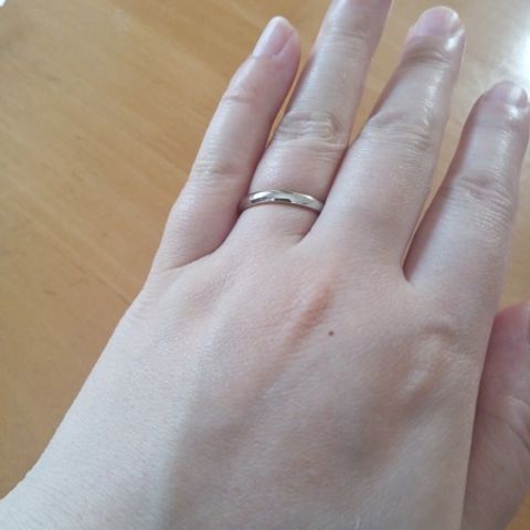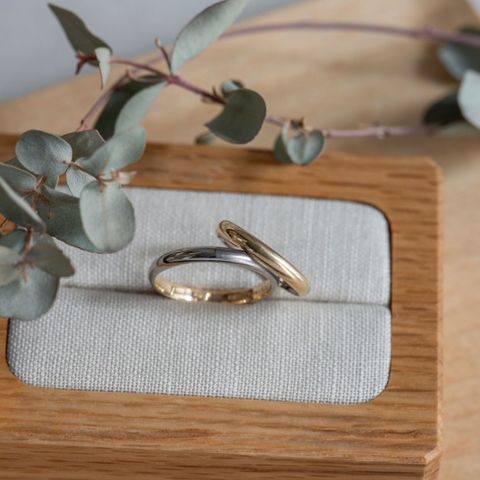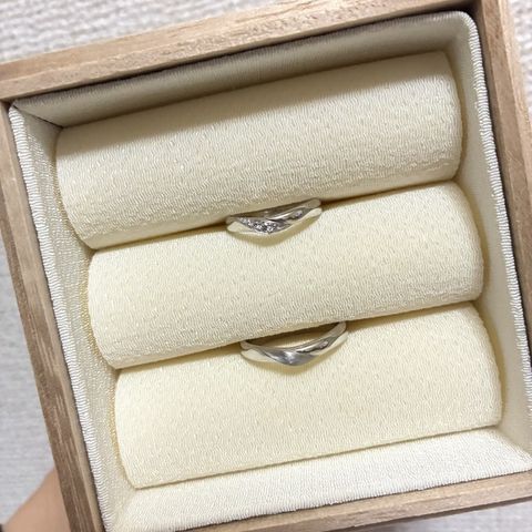 【指輪】 ハメやすく、太すぎず、綺麗に見えるデザインだと思い選びました。 【ペアでの良さ・こだわり】 旦那はベースがゴールド、一部マットゴールドとカスタマイズ。私はベースはプラチナ、ダイヤも真ん中に入っていて、シンプルかつ煌びやかなデザイン。 ゴールドにするか、プラチナにするかで悩んでいたのですが両方叶えられたのでこの点はとても満足しています。 また、婚約指輪はなかったのでその分ダイヤを指輪に入れる前提で探していましたが、なかなかないデザインでとても気に入っています。