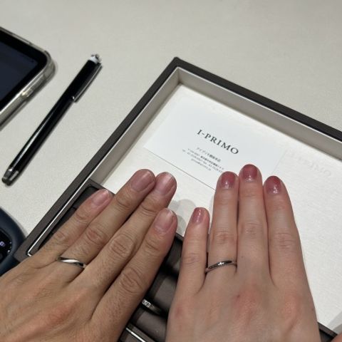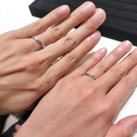 ホームページに載っていた指輪のデザインがシンプルで気に入ったことがきっかけで、来店しました。 ヘアラインのマット加工でお揃い感を出せたのがよかったです。内側に誕生石とイニシャル、日付を入れたデザインが気に入っています。