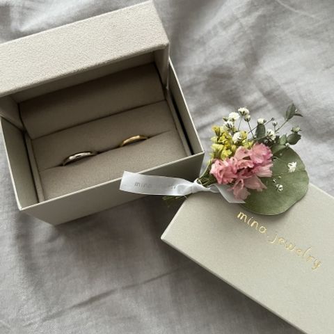 結婚指輪といえばプラチナの指輪が王道だと思いますが、誰とも被らない"ブラウンゴールド"にしました。デザインも派手すぎずシンプルすぎないデザインでかわいいです^^他の店舗にはないカラーで惹かれました!!