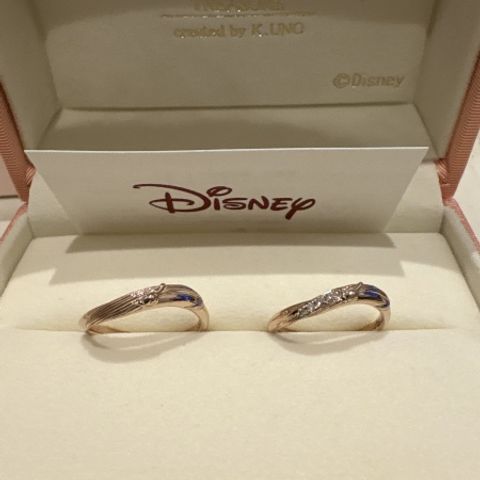 ディズニーが2人とも好きなので、ディズニーデザインのものを探していました。また、結婚指輪なので普段から、仕事でもつけられることを考えていました。さりげないミッキーのデザインと、他ではなかったファンタジアのモチーフであり、気に入りました。