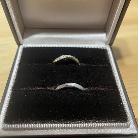 2人ともシンプルなデザインが良く、店員さんにオススメされた指輪が気に入り購入しました。シンプルなので飽きずにずっと使えると思います。素材も気に入ったものがあり大変満足しています。指にはめても違和感がなく素晴らしいです。
