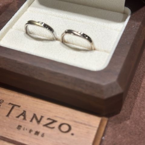 指輪のデザインは、シンプルでありながらも特別感を感じさせてくれるもので、特に私が購入させていただいた「時結」のつや消しが素敵でした。 妻も同じく「時結」を購入させていただき、こちらはダイヤが並べられているようなデザイン。普段アクセサリーを付けない妻も大喜びです。