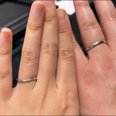 私たちの指輪の一番の魅力は、イメージをそのまま形にできたことです。旦那さんとペアで同じデザインにしつつ、私のものにはダイヤをあしらい、さりげない特別感をプラスしました。また、太すぎず細すぎない絶妙なバランスにこだわったことで、指になじみ、つけていても違和感がありません。シンプルながらも上品で、長く愛用できる理想の指輪になりました。