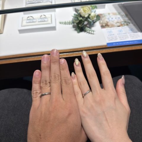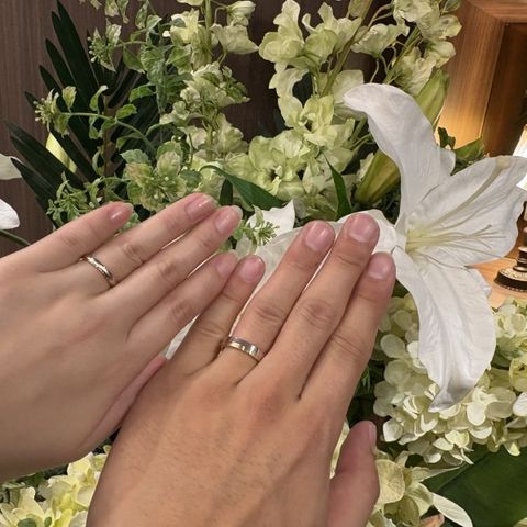 夫が外仕事で手を使うことが多いため、第一条件として強度がある指輪を探していましたが、この指輪はプラチナ900で、かつ、鍛造製法であったため選びました。また、デザインもシンプルかつツートーンになっており可愛さもあるため、これから毎日つける指輪としてとても素敵な指輪です。