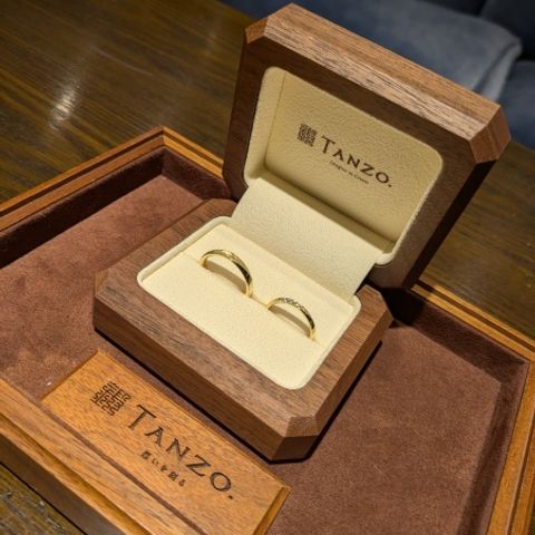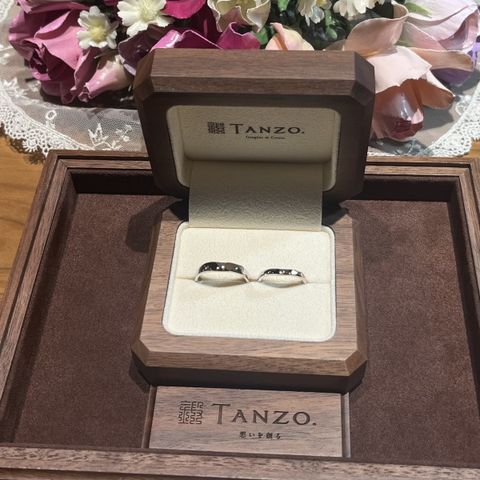 二人で共有出来る唯一の装身具 人生が終わるまでの時間を想うと 丈夫でシンプルなモノが良いと 探して巡り会ったTANZO フルオーダーが出来るので 二人で考え 二人で悩み 二人で決めたこの指輪 ずっと着けていたくなります