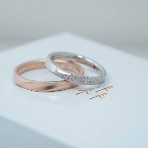 デザインはシンプルだけど少しオリジナリティも感じられるものに2人で相談して決めました。 ピンクゴールドが入っているのですが、マット加工で輝きを抑えておとなしい感じになったのでよりよかったです。 とても満足のいくものになりました!