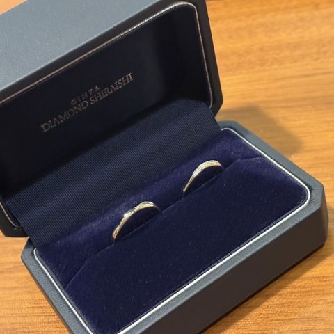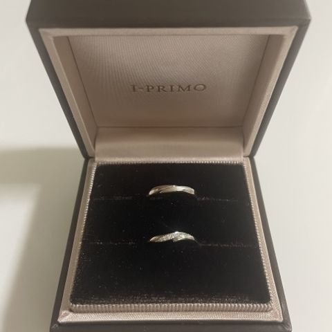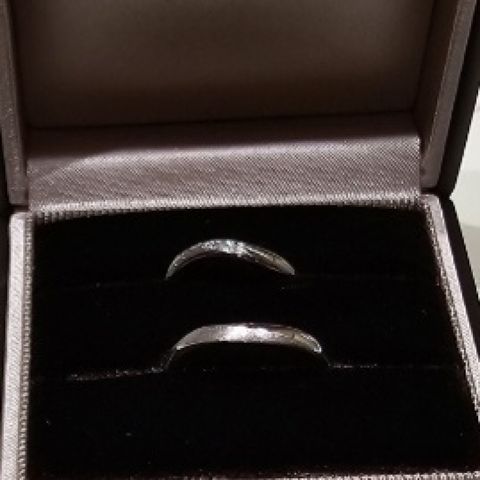 シンプルなのにオシャレなことに加え、パッと見た時に指輪の輝きが分かるところがお気に入りのポイントです!男性側の指輪も少しウェーブなデザインが入っていて、さり気ないオシャレで素敵です!仕事場でも気にせず付けられるので嬉しいです!