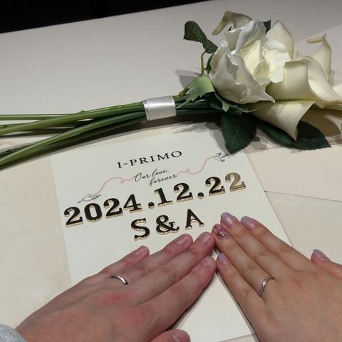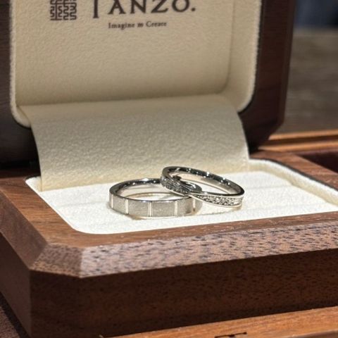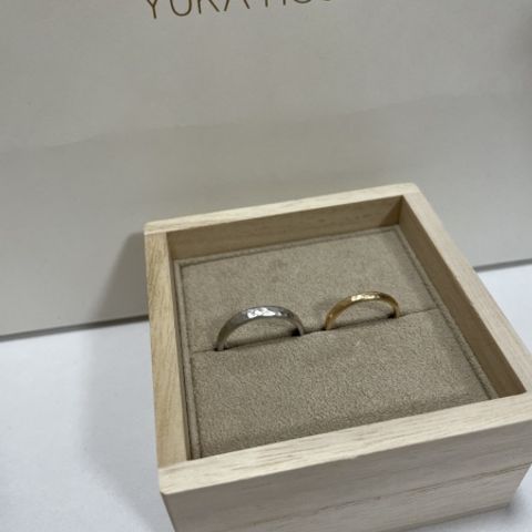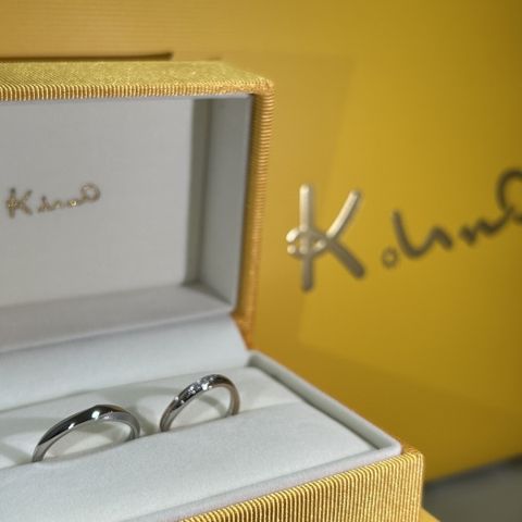 k.unoさんは指輪の幅や色をカスタムできるのがとても良かったです。 5店舗以上巡り、お互いに納得するデザインになかなか巡り合ぇせんでしたが、k.unoさんを訪問し、その場でようやく指輪を決めることができました。