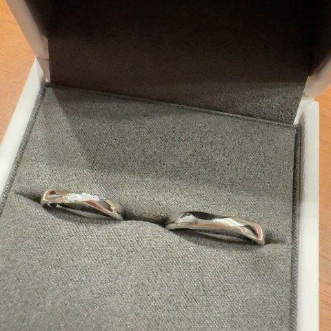 デザインが素晴らしい。ダイヤも多めでどこからでもウェーブが見えて綺麗です。 メンズもウェーブがしっかりで、ペア感もとてもあるところが素敵だなと思いました。 着け心地もとても軽くて、生活に支障のない感じがとてもいいです。