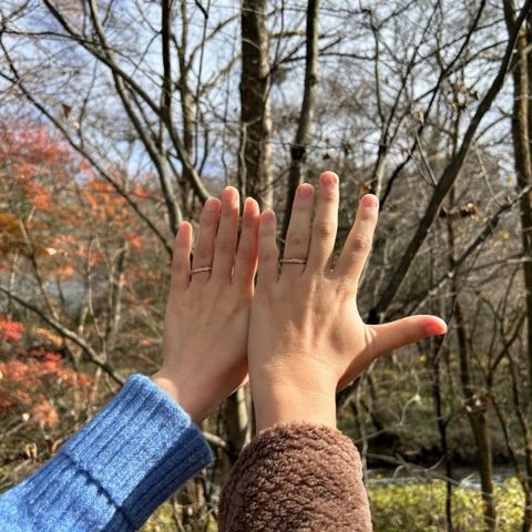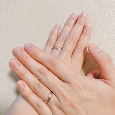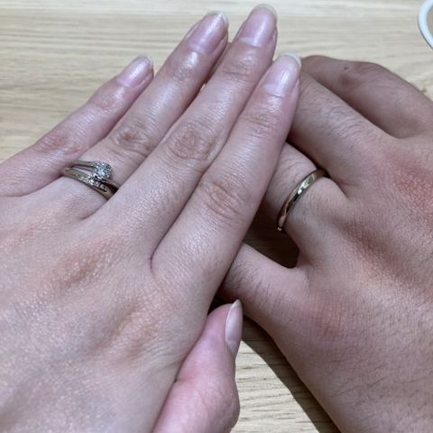 二人の好みを尊重し合い、オリジナルの指輪を作ることができました。 特殊なデザインや石を付けなければ、当日受け取れるのも魅力です。 石は後から入れることもできるため、記念日などに入れるのもおすすめです。