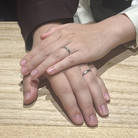 それぞれの好みを妥協せずに選べました‼︎ お互いの好みにそっていくつか指輪を出してもらい より好みのものを最終的に選べ大満足です。 なによりもつけ心地がよく 今まで一度も指輪をつけたことがなかったのですが 違和感なく毎日つけれてます。