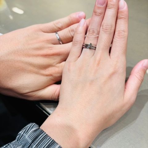 初めは、婚約指輪と結婚指をセットで選ぼうと思っていましたが、スタッフの方から、コンセプトバラバラで選ばれる方もいるとことを聞き、婚約指輪と結婚指輪それぞれ違うコンセプトの物を選んでも、重ね付けして綺麗に見える物を選びました。