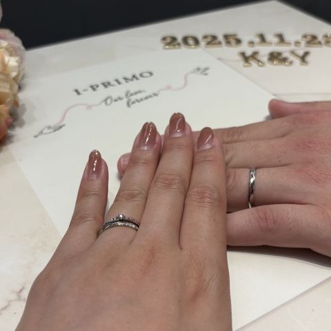 指輪を選ぶ際にも、指輪に対する想いが伝わってきてその中でも特に今回選ばさせていただいた風結には、シンプルなのにゴージャスで、出雲らしさ、日本の和をとても感じられ、自分たちが1番気にいった形にオーダーさせて頂けたので一生の宝物になりました。