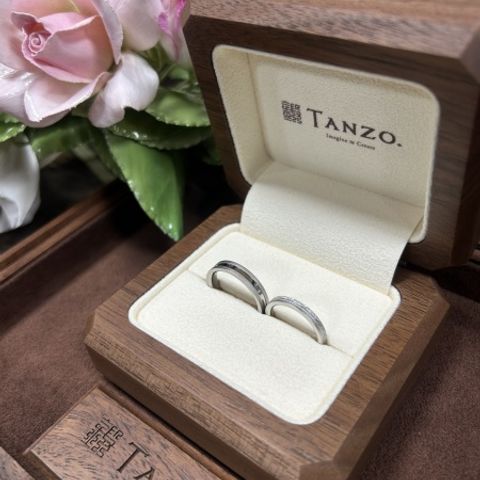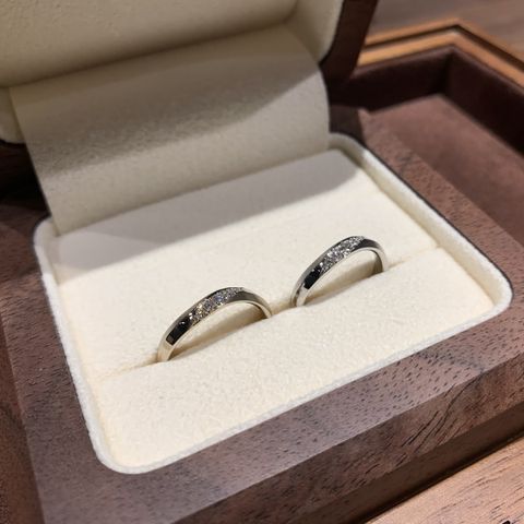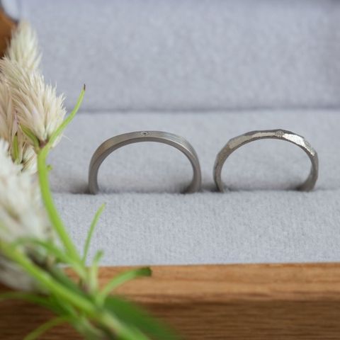 2人ともこだわりが強くなかなか2人ともがしっくりくるデザインが見つからず悩んでいた時にこちらの指輪を見つけました。タンタルという珍しい素材も選ぶことが出来て、他とはまた違う個性が出せる指輪で2人の意見が初めて一致しました。