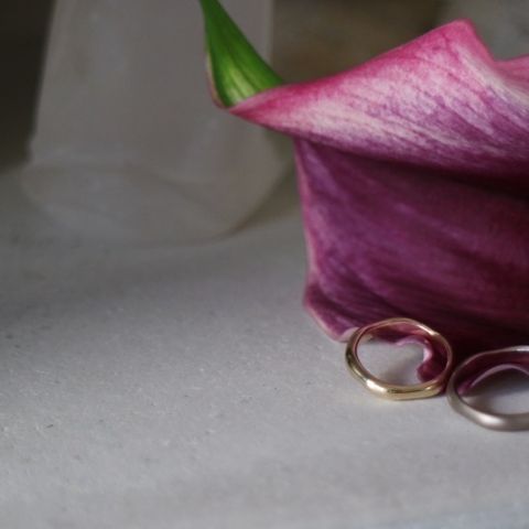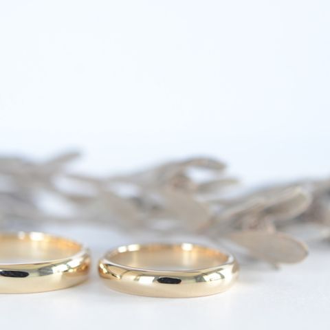 太さや形だけでなく、ゴールドの色合い、質感まで選ぶことができて、悩みながら好みのデザインを決めていくことが楽しかった!お互い好きなデザインにしようと思っていましたが、結果的にペア感たっぷりの仕上がりに。指輪選びの時間も良い思い出になりました!