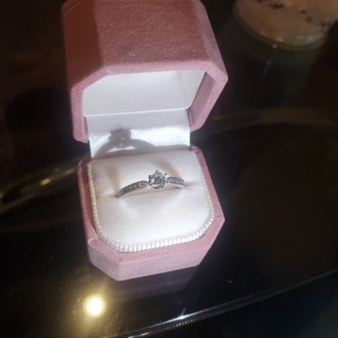 一見はシンプルに見えますが、他にはないデザインだと思い一目惚れしました!ダイヤがそのままはめ込まれているデザインではなく、長方形で、リングの幅に合わせて中心に入っているデザインがとても気に入りました。