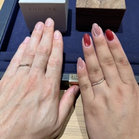 結婚指輪のために妻と一緒に選定しました。色々なブランドを見てみましたが、デザインにオリジナリティがあって、妻の細い指によく合うので、2人で納得感をもって決めました。このように2人とも感性が一致する指輪はこれまでなかったので、こちらの商品に出会えて満足です。