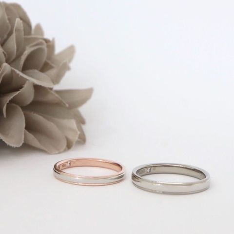 指輪の候補を選ぶ段階で、ウェーブで少し個性のあるものがいいなと思っていました。 2色使いのリングをコンビネーションリングというみたいで、真ん中だけピンクゴールド(イエローも選べた)でそこにダイヤがあるので、ダイヤが映えてとても素敵でした! ウェーブの感じも、指をきれいに見せてくれるのでよかったです! 彼のものは元々真ん中がゴールドでしたが、彼の希望でマット加工に仕上げていただきました。 予算より安く購入できたのでよかったです。