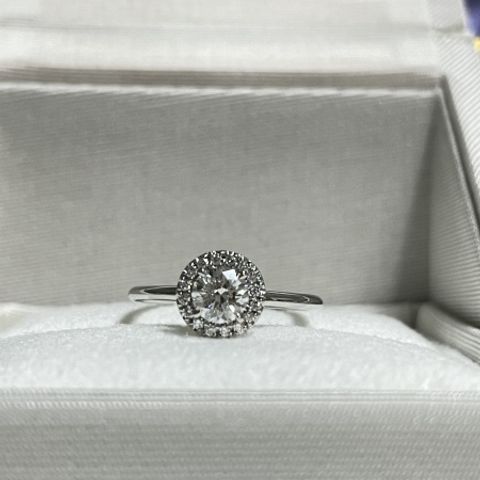 リングの形、ダイヤの輝き、着け心地、全てが理想的で一目惚れで決めました。 婚約指輪で頂いたリングともカタチが似ていて 重ね付けした時にとても綺麗で気に入りました。 彼も形がストレートだとシンプルすぎるかなぁと悩んだ末、表にひねりが入ったデザインにしていて、とても気に入っています。